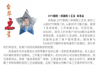 為獎(jiǎng)勵(lì)在各個(gè)層級(jí)上工作表現(xiàn)突出的個(gè)人和團(tuán)隊(duì),公司擁有系統(tǒng)完備的評(píng)優(yōu)體系,包括“臺(tái)華之星”、“優(yōu)秀班組”、“最佳新人”、“優(yōu)秀帶教員”、 “美麗工廠”、 “最佳提案”等,讓每一位員工的付出都能夠得到公司的回報(bào)與認(rèn)可。